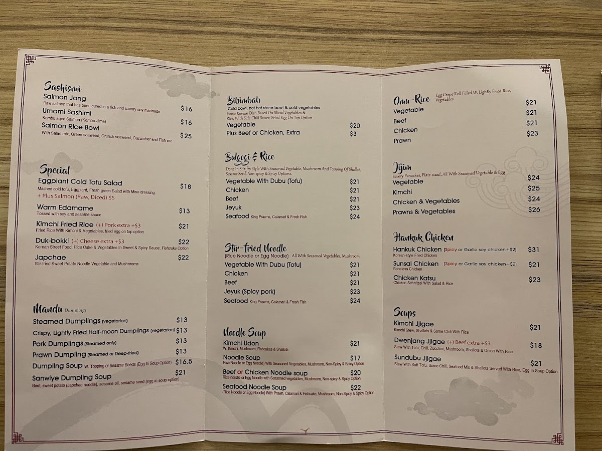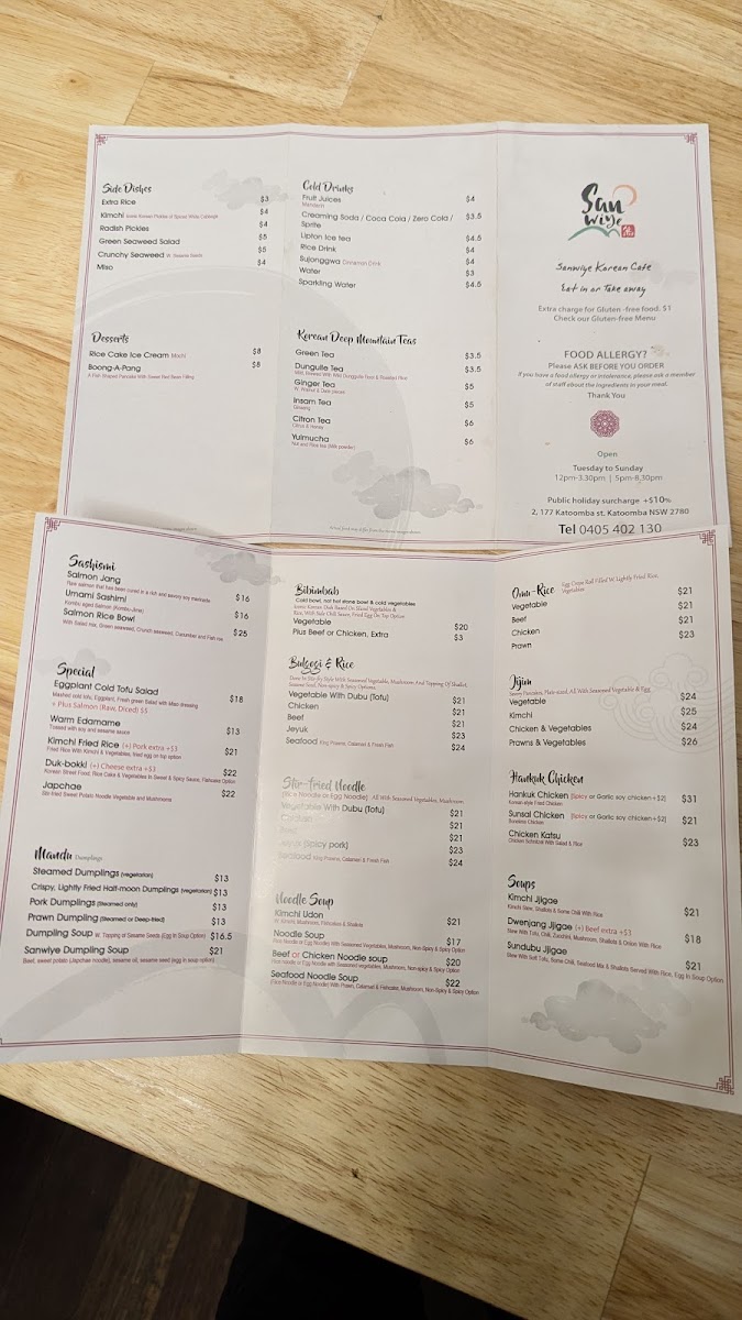 Embark on a culinary adventure at Sanwiye Korean Restaurant, nestled in the heart of Katoomba at 177 Katoomba St. Our menu is a delightful tapestry of authentic Korean flavors that will leave your taste buds craving more! Dive into our must-try specialties, including the Crispy Lightly Fried Half-Moon Dumplings and the savory Japchae, or savor the iconic Kimchi Pancake alongside our popular Bulgogi & Rice. Vegetarians will love the vibrant 비빔밥 bibimbab, while those seeking comfort can warm up with our soothing Ginger or Ginseng Tea. Don't miss out on the unique Boong-A-Pang or the delicious Rice Cake Ice Cream for dessert. With reasonable prices and a diverse selection, there's something for everyone at Sanwiye! Come and experience the warmth of Korean hospitality in every bite!